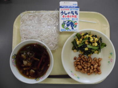 6月は、「彩の国ふるさと学校給食月間」です。生産に携わる人々の感謝の心ふるさとや郷土料理へ理解を深める月間となっています!今日の「さつまいもケーキ」は、川越市でとれたさつまいものペーストを使い、一人でも多くの友達が食べられるように米粉と豆乳を使って作りました🍠もちもちした食感で、ほんのりサツマイモの甘さを感じるカップケーキになりました🧁また、「のらぼうあえ」は、比企地区でとれる伝統野菜の「のらぼう菜」を使ったごま酢あえです。埼玉県の味を味わいながら食べられるといいですね♪