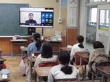 chromebookを使って、meetで各教室にオンラインで配信しました。