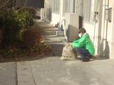ほうきや熊手で、落ち葉を掃いて、ごみ袋に入れる、単純ではありますが、結構重労働です。