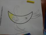 今日の朝の活動は、アートタイムでした。今日の課題は三日月のような形の絵でした。