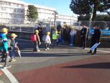 北風が吹いて寒い日でしたが、子供たちは元気にあいさつしていました。