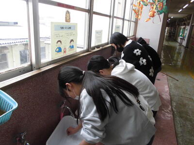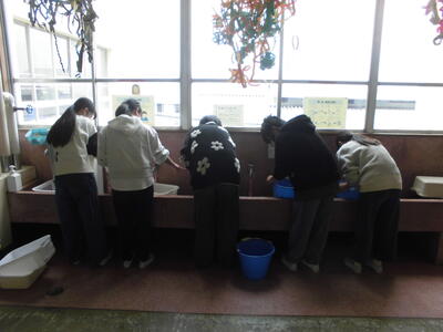 今日は、6年生が洗浄を手伝ってくれました。メラミンスポンジを使い、隅々までピカピカに磨いてくれました🧽