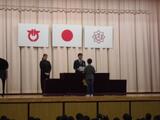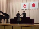 代表の子が壇上に上がって校長から賞状を受け取りました。