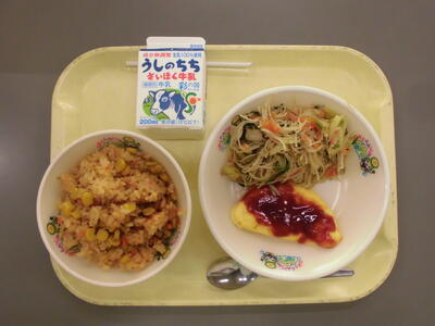 今日は、新メニューの「ビーフンペペロンチーノ」が登場です✨ペペロンチーノとは、イタリア語で唐辛子という意味です🌶正式には、「アーリオ・オーリオ・ペペロンチーノ」という名称で、「にんにく🧄・油・唐辛子🌶」という意味です。ペペロンチーノは、パスタの味付けとしてよく見かけますが、今回は米からできたビーフンを使って作りました。辛さは、子供達に食べやすい辛さに調整しています!今年度の給食も残りわずかになりました。味わって食べましょう😊
