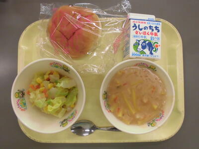 今日の「マカロニのひりひりあえ」は、トウバンジャンを加えてピリ辛に仕上げているので‟ヒリヒリあえ“という名前になっています!マカロニのひりひりあえは、マカロニをホワイトソースで煮込む料理で、ルウは給食室で手作りします✋ホワイトルウのまろやかさと、ピリッとした辛さが相性抜群の一品です✨ピリッとしていて辛いのが苦手な人は、パンに付けて食べるのがおすすめです🍞
