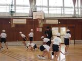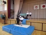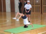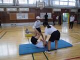 今日は、6年生の体育の授業の研究発表会がありました。マット運動の授業を市内の体育を担当している教員が参観しにきました。