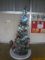 また、恒例のクリスマスツリーも図書室前に飾られました。今年のツリーは電飾がついてキラキラ光っています。とてもきれいです。
