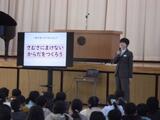 始業式の後、今月の生活目標「寒さに負けない体をつくろう」について、養護教諭から手洗いの歌の紹介と病気に負けない体になろうという話がありました。