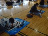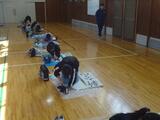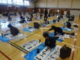 体育館では2学年ずつ並んで、一斉に書きました。