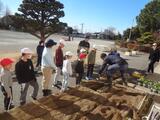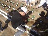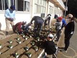 はじめにゲームで、お互いに仲良くなりました。笑顔いっぱいになったところで、いよいよ花植えに入りました。子供たちは、北本分校の生徒さんのお話を真剣に聞いて、慎重に苗を植えていきました。