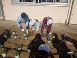 今日は、騎西特別支援学校 北本分校の先生と生徒さんが、以前なかよし学級の子供たちに花の種植えを教えてくださいました。それを自校に持ち帰って育ててくださり、立派な苗になって、今日お持ちくださいました。今日は、なかよし学級に花の苗を花壇に植える作業を教えてくださいました。